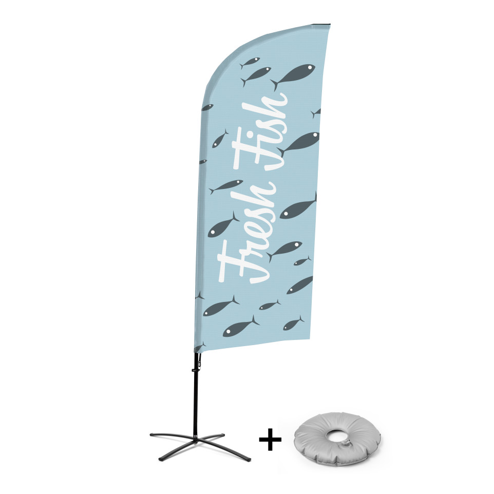 L’ensemble est simple à assembler : remplissez la base avec eau ou sable avant d’insérer le mât en aluminium. Fixez ensuite le drapeau au mât et profitez instantanément d’une publicité visible et dynamique dans tout environnement choisi.