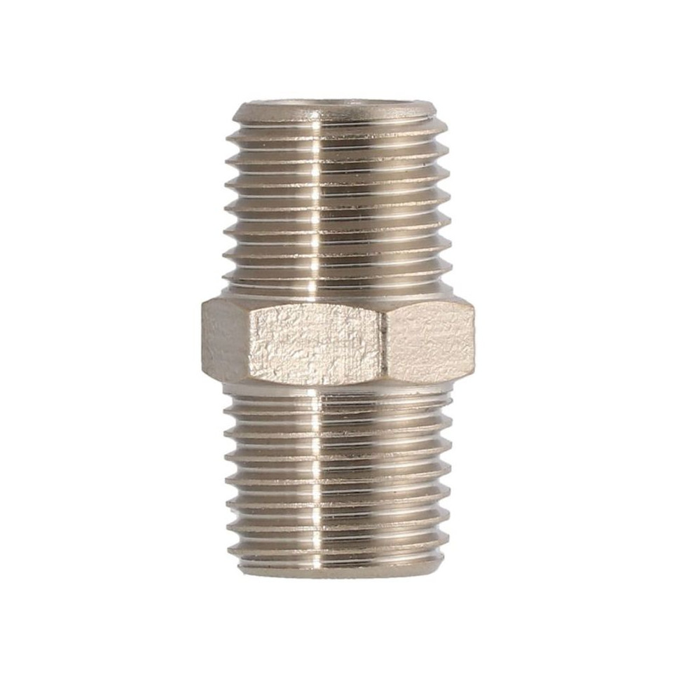 Le double nipple 1/4" est un raccord droit à filetage mâle des deux côtés, conçu pour relier rapidement et efficacement deux éléments de circuit pneumatique ou hydraulique nécessitant une connexion fiable.