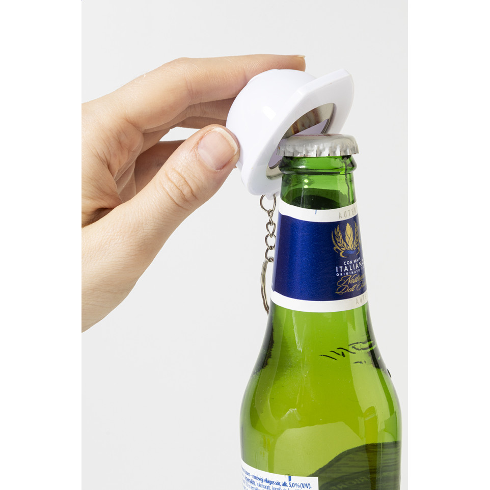 Le Bobby Pop blanc est un porte-clés décapsuleur en forme de casque de sécurité, fabriqué en ABS recyclé. Pratique et original, il combine utilité quotidienne et design ludique.