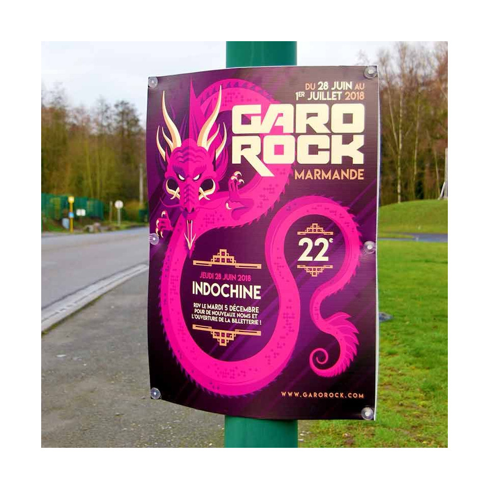 Le cache poteau publicitaire, appelé aussi PLV de parking, est un support de communication temporaire qui s’installe facilement en extérieur (signalétique, événements, …) comme en intérieur (salons, expos, …). Ce couvre poteau publicitaire est en polypropylène alvéolaire 3,5mm, une matière durable et légère, qui résiste à la pluie et au mauvais temps. Deux panneaux sont assemblés dos à dos au moyen de clips PVC à usage unique pour s’accrocher autour d’un poteau, d’une grille ou encore d’une barrière. Il s’agit d’une impression directe à plat réalisée en quadrichromie qui offre un rendu mat de haute qualité. Le cache poteau vous offre une solution économique et efficace pour votre communication PLV et évènementielle.