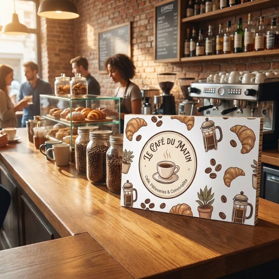 A5. Matériau adapté aux espaces intérieurs : Panneau pensé pour une utilisation en magasin, showroom ou salon, avec une bonne tenue dans le temps en environnement intérieur et une présentation soignée pour vos clients.