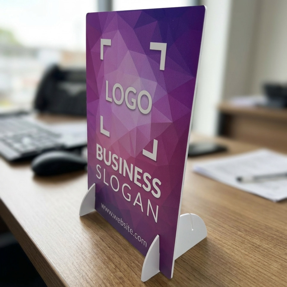 A1. Polyvalent pour tous vos messages : Utilisez un seul présentoir pour vos promotions, vos tarifs, vos horaires d’ouverture, un menu ou une signalétique de comptoir, sans multiplier les supports ni encombrer votre espace. A2. Formats A4 et A3 adaptés à votre visibilité : Choisissez le format le plus lisible pour votre comptoir, pour afficher clairement vos informations même dans les environnements très fréquentés. A3. Orientation au service du contenu : Optez pour une version verticale ou horizontale afin d’optimiser la mise en page de vos visuels, améliorer le confort de lecture et renforcer l’impact de vos messages. A4. Impression recto ou recto verso optimisée : Sélectionnez 1 face ou 2 faces selon la configuration de votre comptoir, pour communiquer aussi bien côté client que côté personnel ou sur deux sens de circulation. A5. Découpe sur mesure pour votre image : Bénéficiez d’un choix entre une découpe rectangulaire aux coins arrondis pour un rendu soigné, ou une forme personnalisée simple pour intégrer vos codes de marque et vous distinguer visuellement.