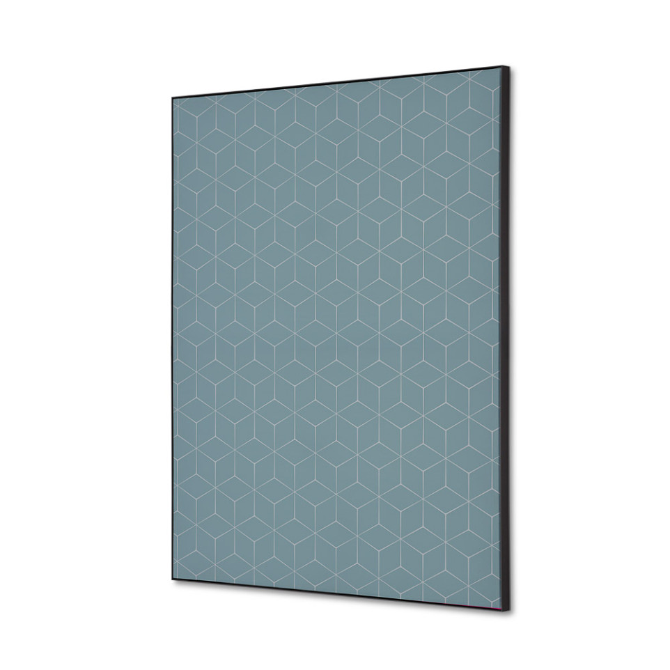 Panneau décoratif mural en tissu imprimé au motif hexagonal gris, conçu pour habiller les murs des espaces professionnels et commerciaux avec élégance et sobriété.