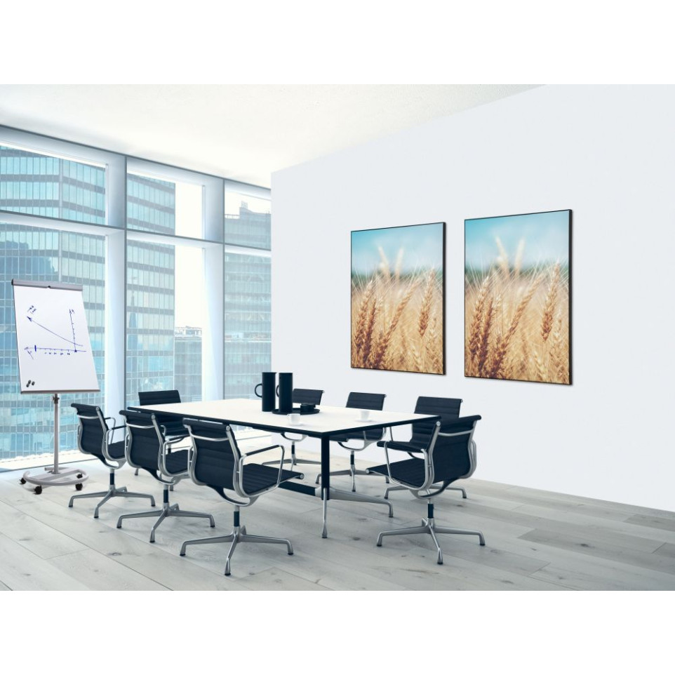 Le panneau se fixe directement au mur, sans encombrement au sol. Il s'intègre facilement dans les bureaux, espaces d'accueil, salons professionnels ou zones de vente pour apporter une touche décorative structurée et cohérente à l'environnement.