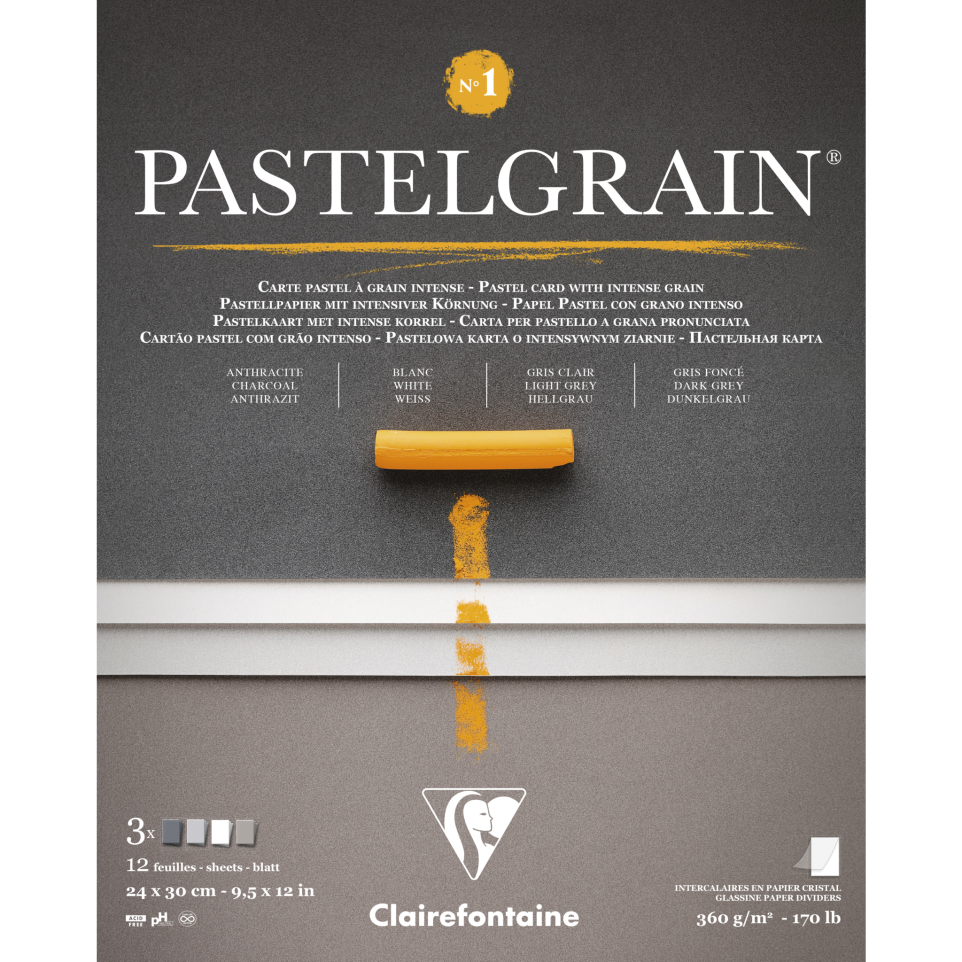 PastelGrain bloc collé n°1 12F 24x30cm 360g Papier PastelGrain à la surface à la fois intense et délicate. Cette carte spéciale, dédiée au dessin au pastel sec, permet de multiplier les pigments sans effet de saturation, ni fixatif. Avec sa surface au grain plus prononcé que Pastelmat, elle offre de nouvelles expériences pour le dessin au pastel et permet d'accentuer les effets de texture. Résistante au gommage, elle permet de beaux estompages et résiste aussi aux techniques humides : même mouillée, cette carte conserve ses propriétés uniques ! Facile à utiliser, elle convient aux débutants et offre une nouvelle expérience pour les artistes confirmés et professionnels !