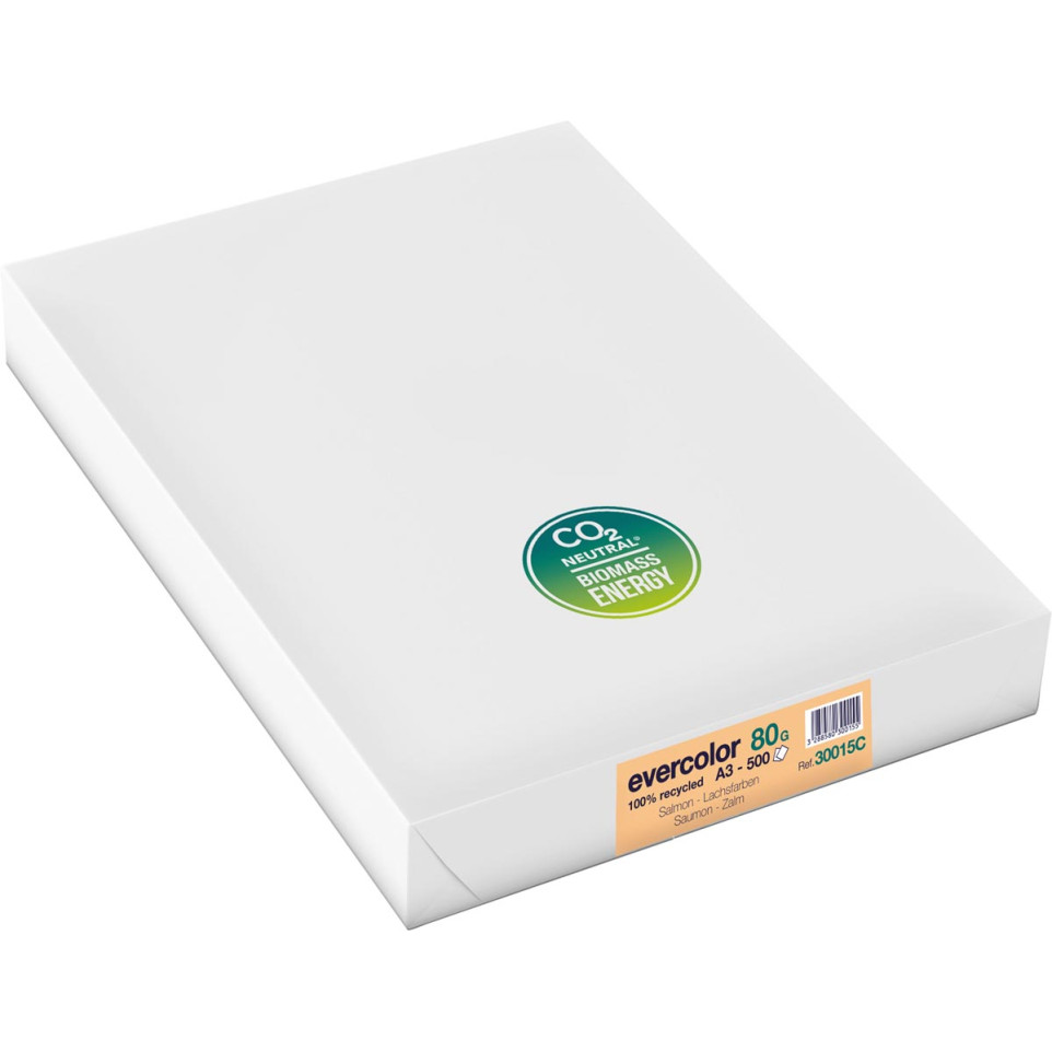 Papier couleur saumon Clairefontaine Evercolor recyclé en format A3 (29,7 x 42 cm), 80 g/m², paquet de 500 feuilles. Idéal pour donner de la visibilité à vos communications, supports pédagogiques ou documents d’entreprise.