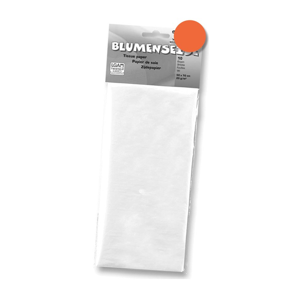 Papier de soie couleur orange, léger (20 g/m²), format 50 x 70 cm, proposé en paquet de 26 feuilles sous cellophane. Parfait pour les loisirs créatifs, l’emballage décoratif, ou le scrapbooking.
