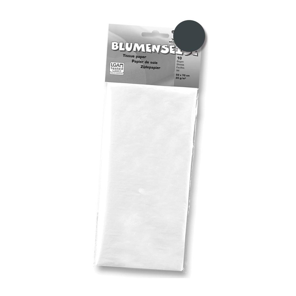 Papier de soie Folia noir, conditionné en paquet de 26 feuilles sous cellophane, format 50 x 70 cm, 20 g/m². Idéal pour les travaux créatifs, la décoration, l’emballage et les loisirs créatifs.