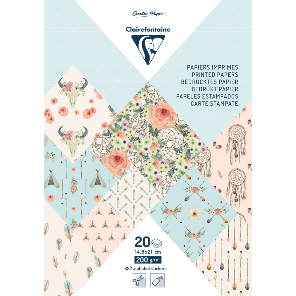 PAPIERS IMPRIMÉS, Bloc de 20 feuilles 200g/m2 au format 14.8x21cm - Bohème chic/ Pce