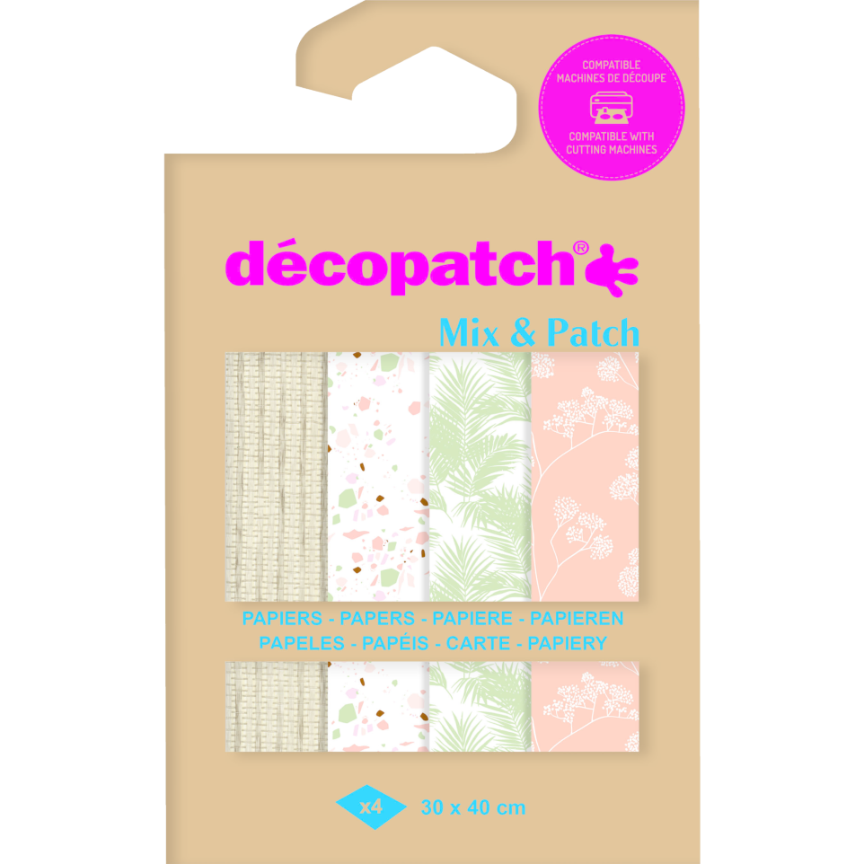 Mix & Patch - Terracotta ASSORTIMENT DE 4 FEUILLES : La pochette contient 4 feuilles Décopatch assorties de 30x40 cm chacune. 4 motifs différents et colorés pour toutes vos customisations (dont 2 papiersavec effet foil) ! PAPIER MULTI-SURFACES : Le papier Décopatch épouse parfaitement la forme de tous les objets (plats ou irréguliers) et sur toutes les matières (papier mâché, bois, plastique, fer, verre, polystyrène, métal, terre cuite, céramique, liège.). FINITION PARFAITE : Très facile à appliquer grâce à sa finesse et à sa résistance une fois encollé, le papier Décopatch est l'unique papier à donner un aspect lisse et l'illusion d'une peinture à vos réalisations ! ECOLOGIQUE : Les papiers Décopatch permettent de personnaliser vos créations et redonner vie à vos objets démodés, abîmés ou défraîchis, fini le gachis : on ne jette plus, on rénove (tout en s'amusant) ! CREE EN FRANCE : décopatch est une marque française appartenant au groupe Clairefontaine Rhodia, et située près de Lyon. Le papier d écopatch est designé puis imprimé en France.
