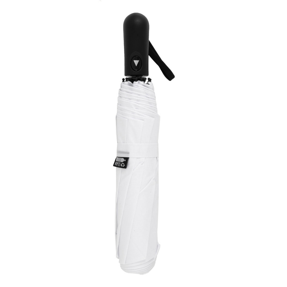 Parapluie pliant automatique Folmax blanc doté de 8 panneaux, livré dans une pochette assortie. Idéal pour les déplacements urbains, il offre une protection fiable contre la pluie et le vent grâce à sa conception innovante.