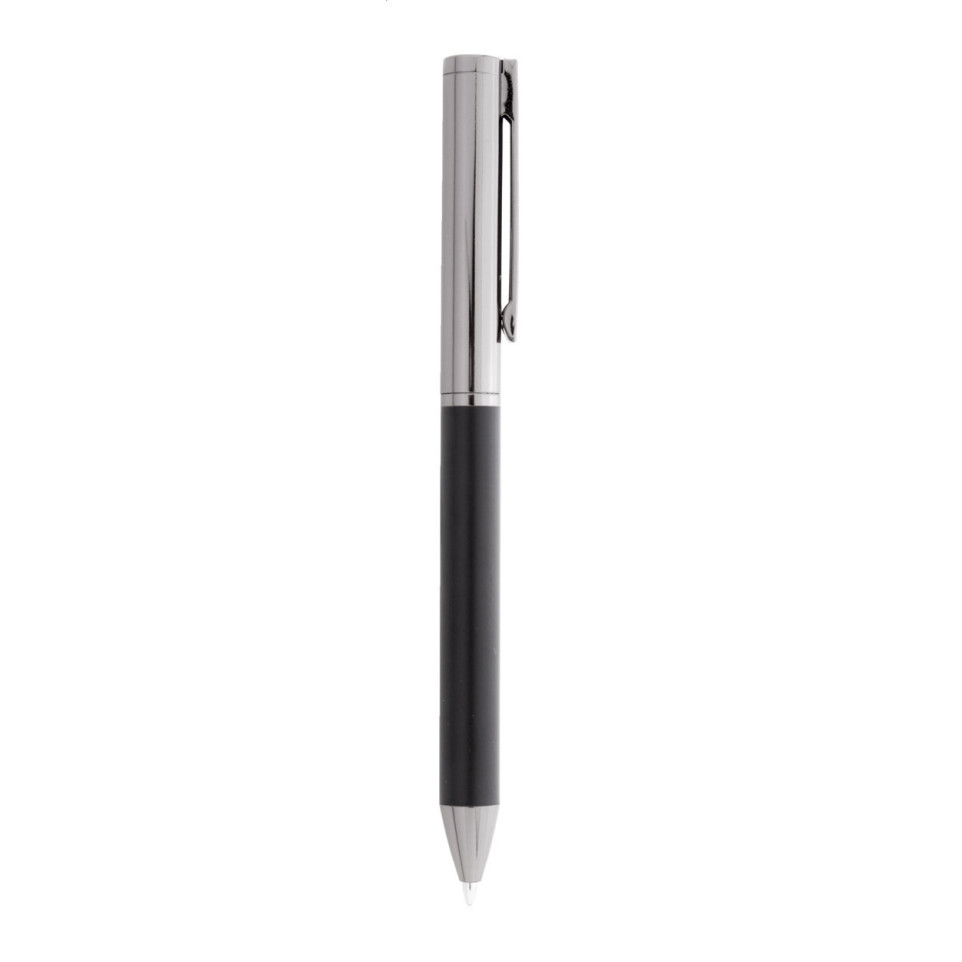 Parure de stylos Carrol noir composée d’un stylo à bille et d’un stylo roller, tous deux en métal, présentés dans un élégant étui cadeau en papier noir. Idéale pour les professionnels souhaitant écrire avec distinction au bureau ou en rendez-vous.