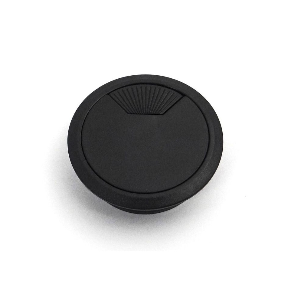 Passe-câbles en PVC noir de diamètre 60 mm, conçu pour l’organisation et la protection des câbles dans le mobilier. Idéal pour bureaux, tables ou armoires, il permet de garder les espaces nets en dissimulant les fils électriques.