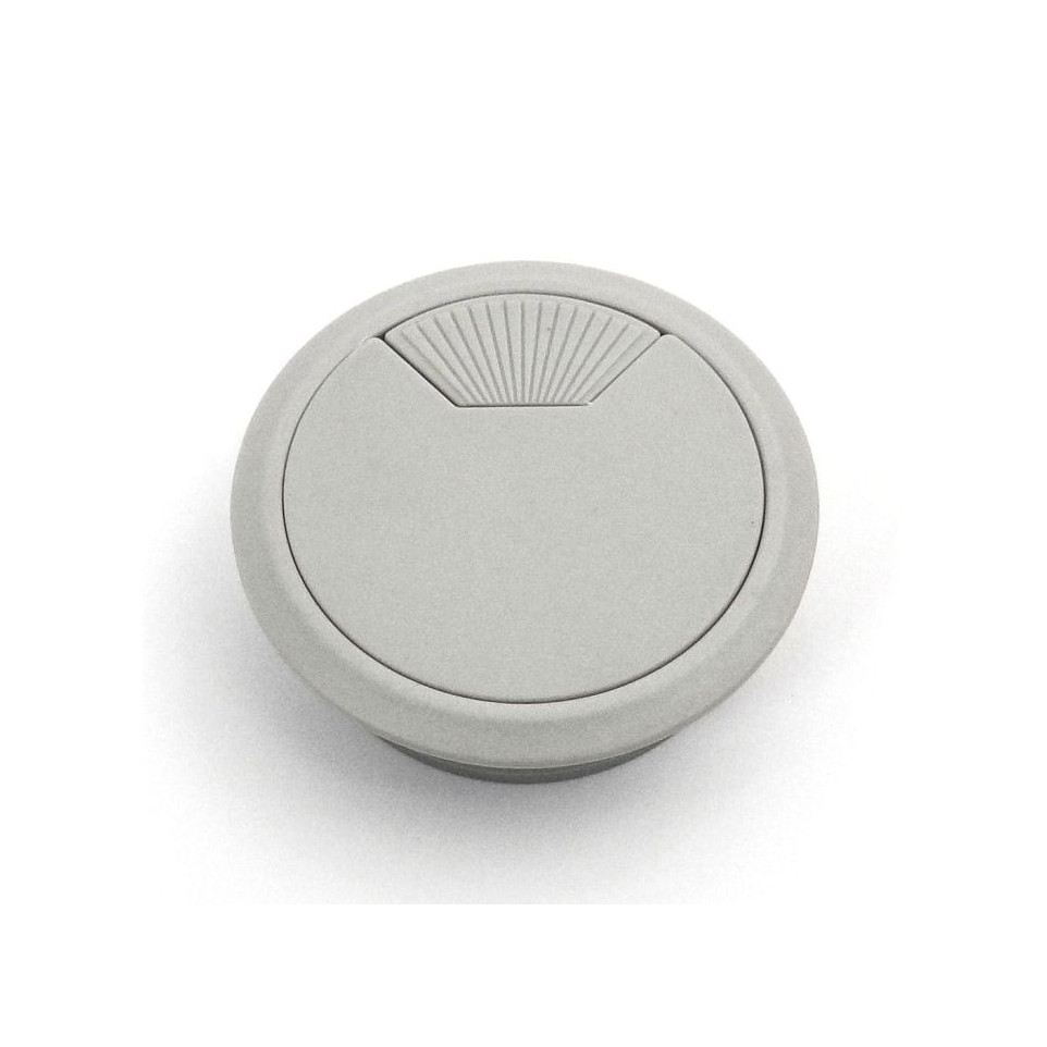 Passe-câbles en PVC de diamètre 60 mm, coloris gris clair, conçu pour la gestion et l’organisation des câbles au sein de meubles de bureau ou d’habitat. Idéal pour garder un espace de travail propre et ordonné.