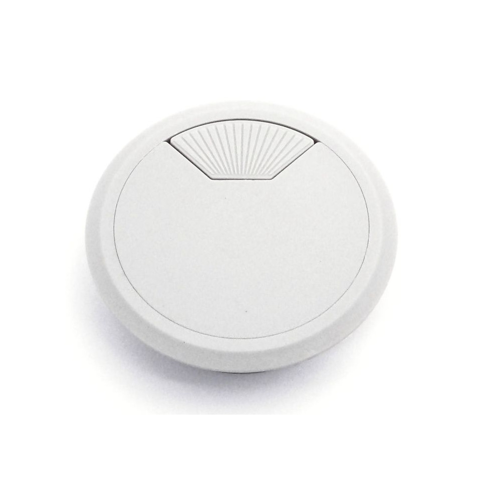 Passe-câbles en PVC blanc, diamètre 80 mm, conçu pour une gestion discrète et efficace des câbles sur le bureau, le plan de travail ou le mobilier informatique. Adapté aux environnements professionnels et domestiques.
