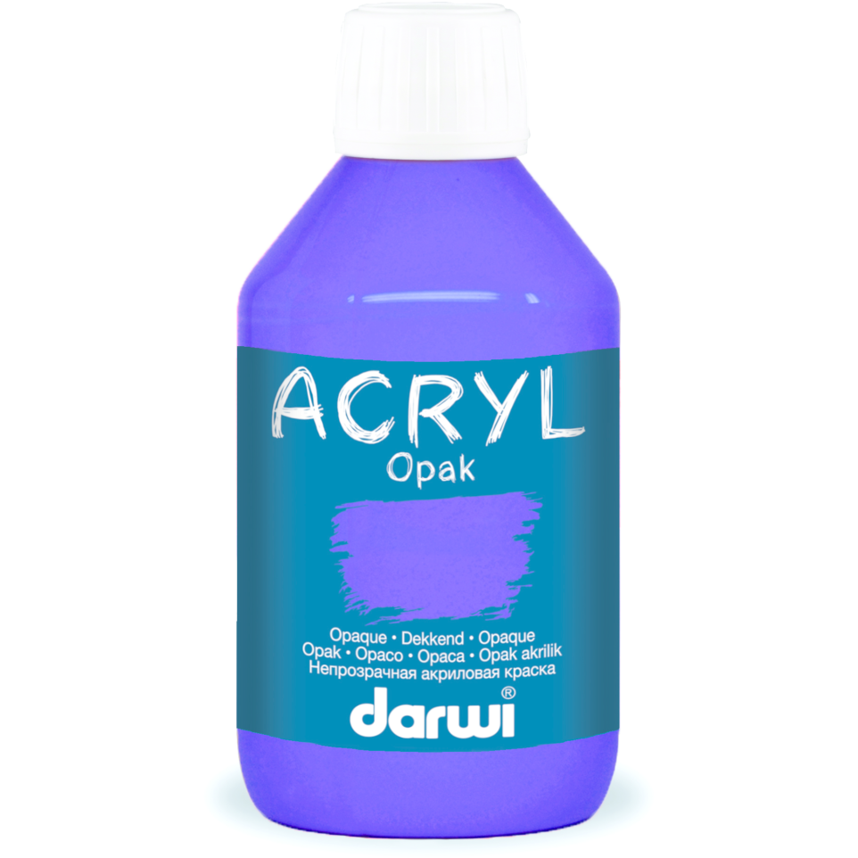 Darwi Flacon de 250 ml de Peinture Acrylique Universelle Opaque La peinture acrylique universelle DARWI offre de nombreuses possibilités créatives pour les artistes amateurs, professionnels et passionnés de loisirs créatifs. Idéal sur tous les supports, elle s'adapte à toutes les envies créatives ! Dense en pigments, la finition OPAQUE couvre complètement la surface sans laisser transparaître la couleur de base. 38 teintes miscibles, mates, extrêmement couvrantes, viscosité élevé. Avant utilisation, bien secouer le flacon. Il est également recommandé de dégraisser et nettoyer la surface à peindre. La peinture peut s'appliquer à l'aide d'un pinceau ou d'une éponge mais aussi directement au tube grâce à son embout-applicateur ajoutant ainsi du relief aux créations. La peinture se dilue et se nettoie à l'eau. Conserver le produit à une température comprise entre 5 et 25 degrés.