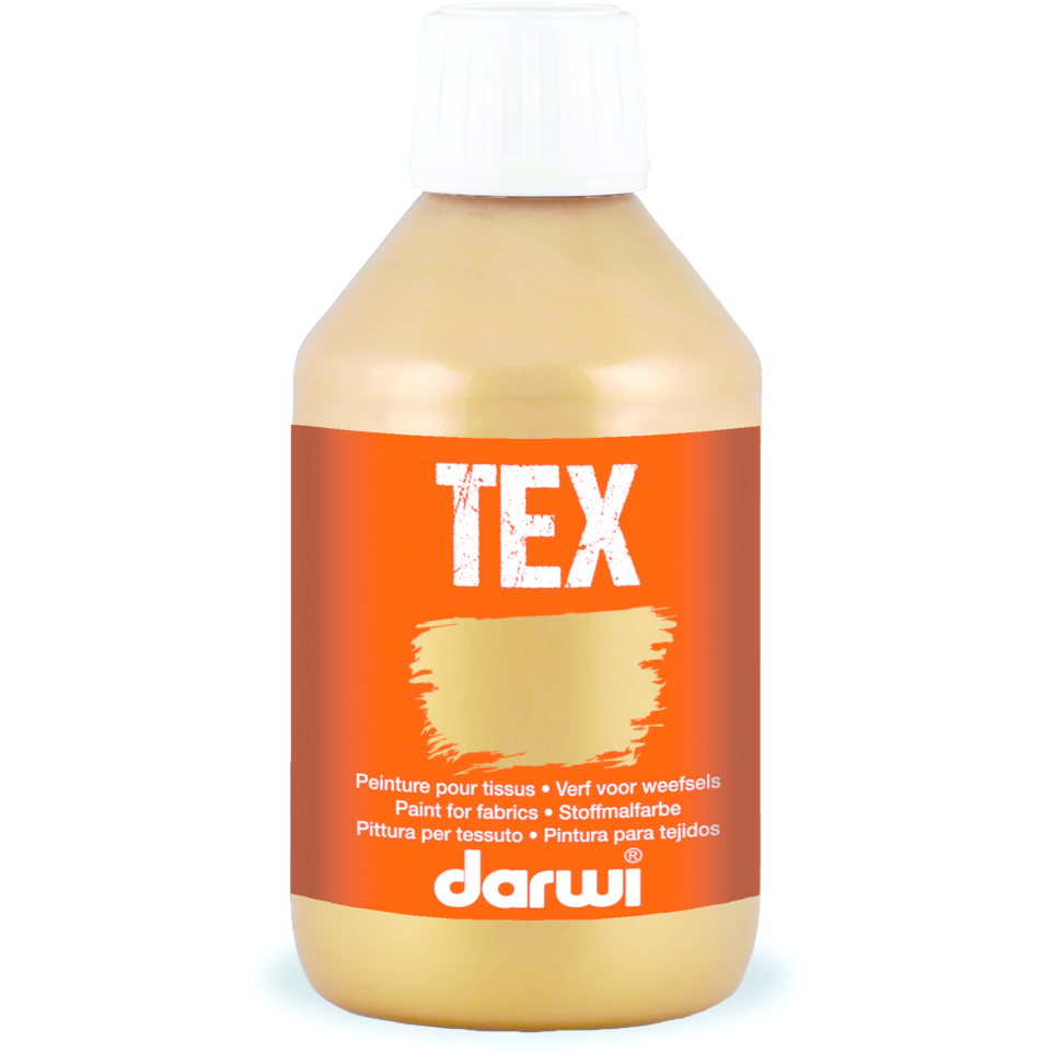 DARWI Flacon de 250 ml de Peinture Textile Métallique Formulée à base d'eau et prête à l'emploi, la peinture est facile à utiliser et non toxique. Polyvalente, elle adhère à une très grande variété de tissus naturels (coton, lin, jute, laine et soie) et synthétiques, qu'ils soient clairs ou foncés, fins ou épais. Les couleurs sont miscibles, permettant ainsi de créer de nouvelles teintes. Sa texture crémeuse permet de réaliser des traits précis et des mélanges subtils. Sa composition offre une excellente adhérence aux fibres du tissu tout en préservant sa souplesse et offre une prafaite résistance aux lavages (maximum 60%). La gamme de peinture textile métallique comprends 3 teintes miscibles (Or, cuivre et argent) mates et extrêmement couvrantes. Mode d'emploi : Bien secouer le flacon avant utilisation. Polyvalente et facile à utiliser, cette peinture s'applique à l'aide d'un pinceau, d'une pipette ou d'un pochoir. Pour une adhérence optimale, prélaver le tissu avant application de la peinture, en évitant l'utilisation d'assouplissant. Toujours s'assurer que le textile est propre et sec avant application. Pour rendre la réalisation indélébile, après séchage, repasser le tissu à l'envers à l'aide d'un fer pendant 5 minutes, sans vapeur, dans la position adaptée au tissu. Utiliser l'opacifiant pour créer des tons plus ou moins couvrants selon la couleur du textile à peindre. (proportion du mélange : 50% - 50%)