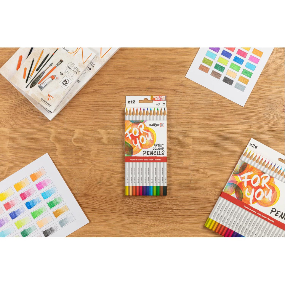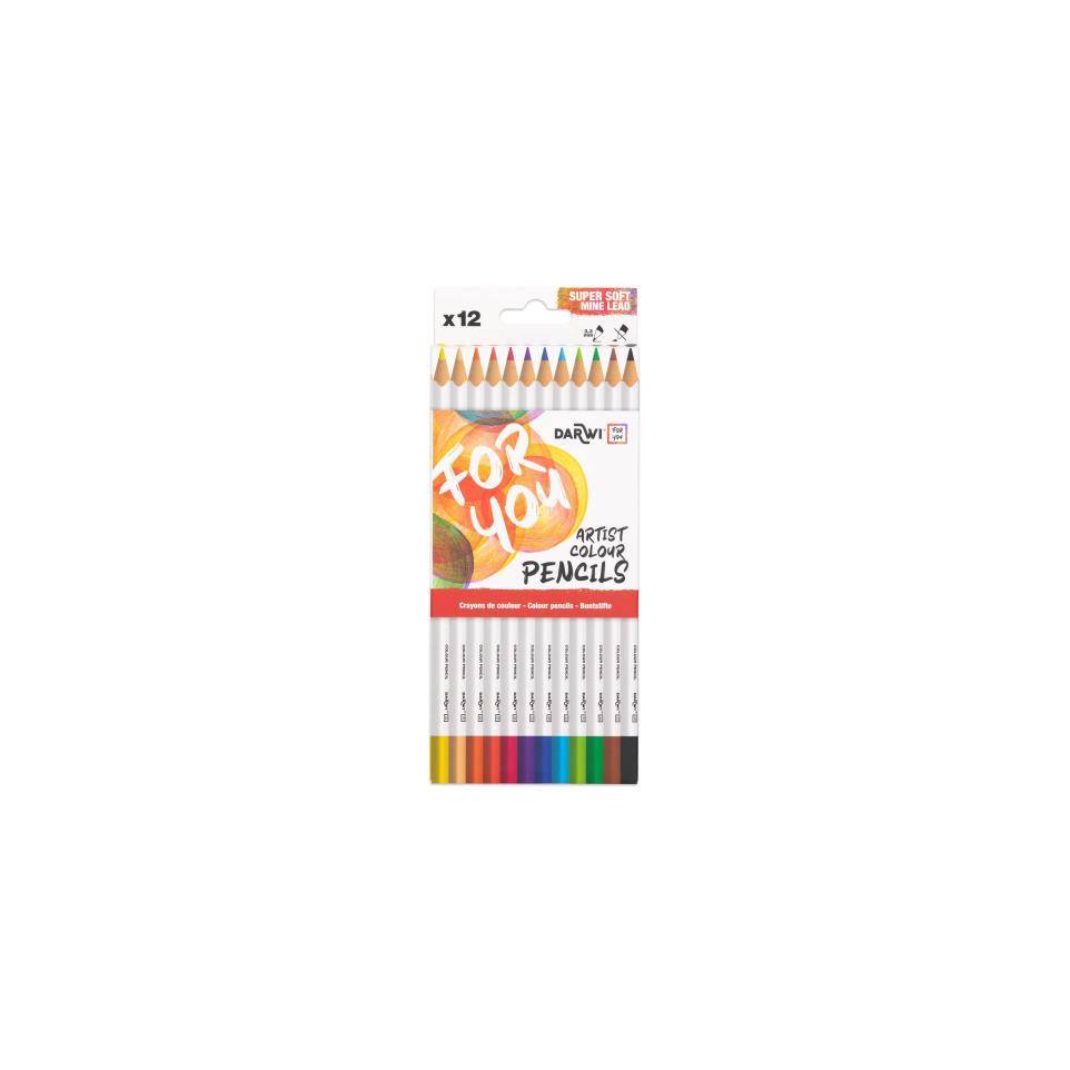 Darwi For You boite de 12 crayons de couleur standards Les crayons de couleur Beaux-Arts Darwi For You offrent une palette variée pour répondre à toutes vos créations. La gamme de crayons de couleur Darwi For You se compose d'une version classique, et d'une version aquarellable, disponibles à chaque fois en boite de 12 ou de 24 crayons. Les crayons de couleur Darwi For You possèdent des couleurs lumineuses et intenses, ainsi qu'une mine très tendre de qualité supérieur. Leur haute résitance à la casse et le diamètre de 3.3 mm de la mine vous permettrons un tracé net et précis. Ces crayons disposent d'un manche en bois FSC pour être responsable et d'une forme triangulaire pour une excellente prise en main.
