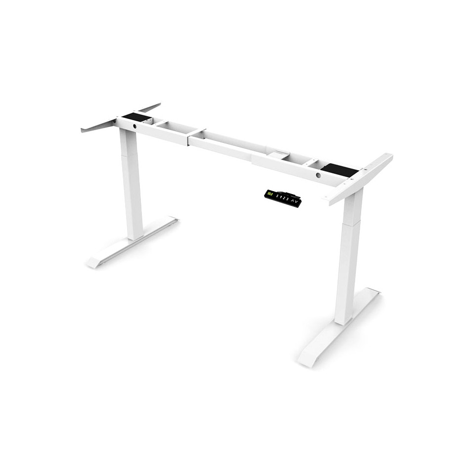 Piètement de bureau électrique Contuo blanc, conçu pour offrir une transition fluide entre position assise et debout en environnement professionnel. Idéal pour créer un poste de travail ergonomique et ajustable au quotidien.
