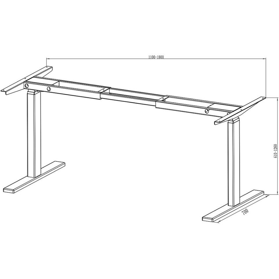 - Réglage électrique en hauteur sur un étage, plage de 700 mm à 1200 mm