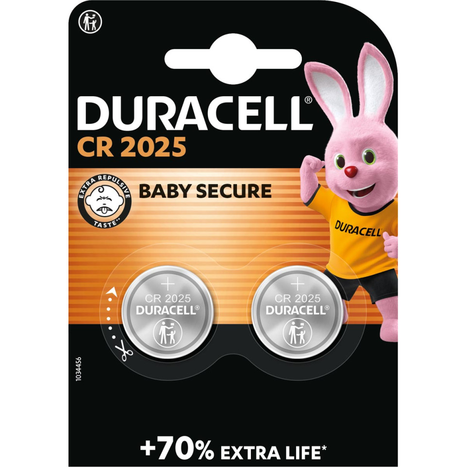 Piles bouton Duracell CR2025, non-rechargeables au lithium, conditionnées en blister de 2 pièces. Idéales pour alimenter des dispositifs électroniques compacts comme les clés de voiture, télécommandes, balances, objets connectés, capteurs, appareils médicaux ou équipements de sport.