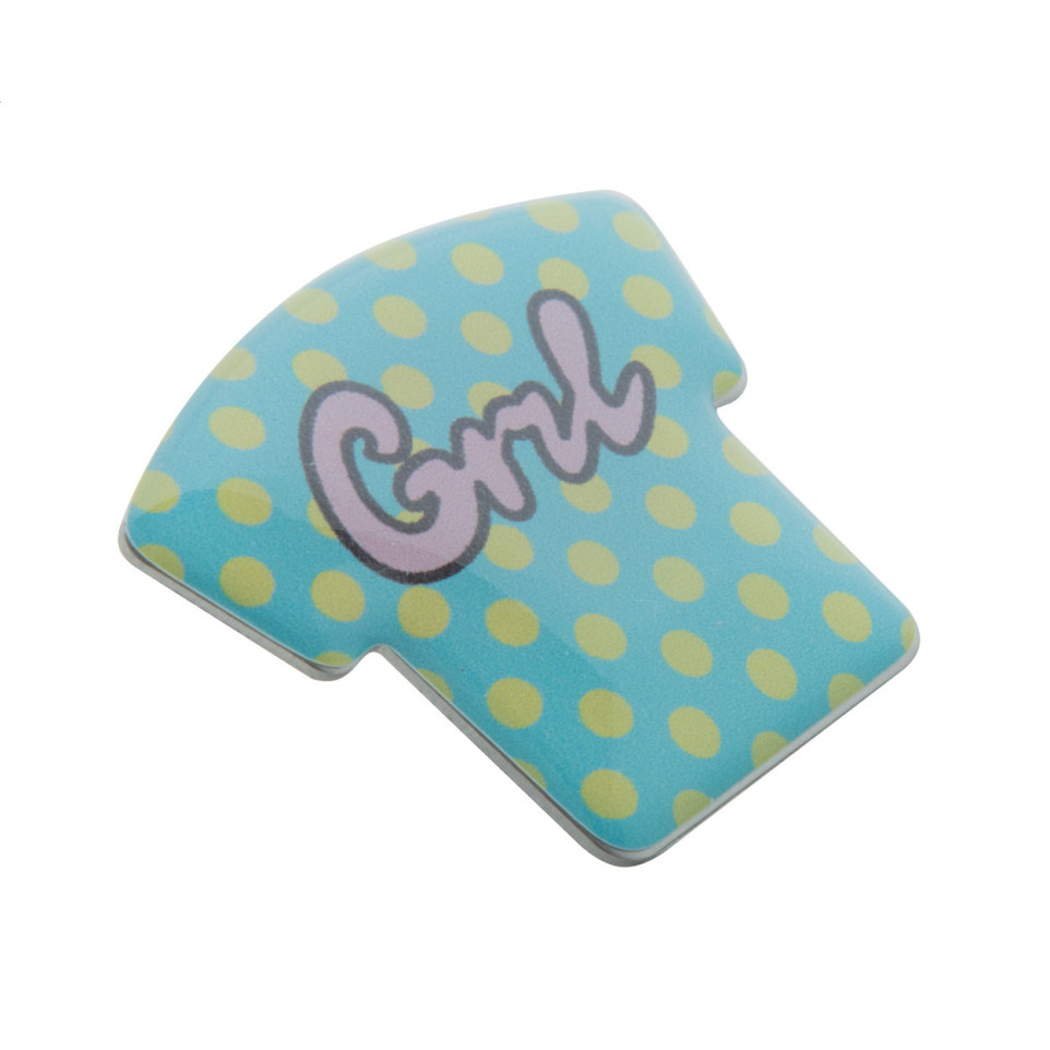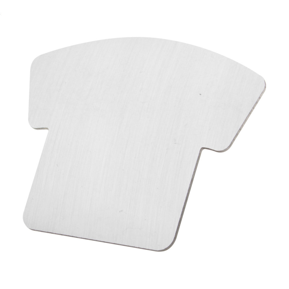 Le badge en métal Trick argenté est un accessoire promotionnel élégant en forme de t-shirt, agrémenté d'un dôme époxy qui lui confère brillance et durabilité. Idéal pour les événements professionnels et campagnes de marque.