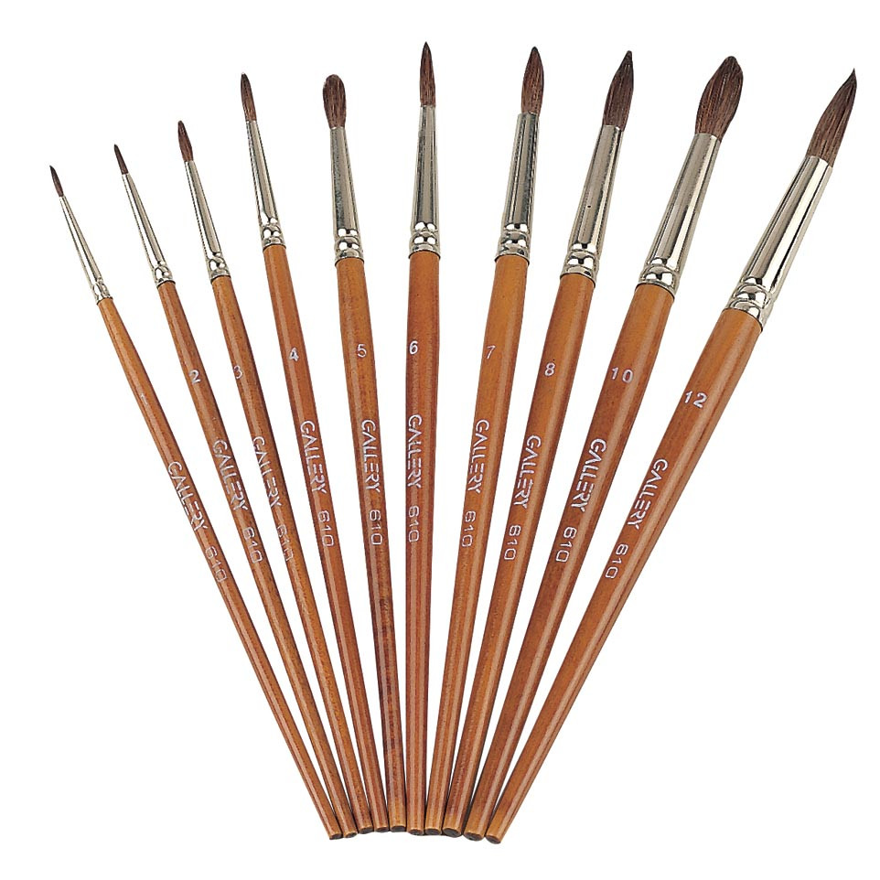 Pinceau rond Gallery série 610 n° 07 spécialement conçu pour l’aquarelle et la gouache. Fabriqué en poney pur, il dispose d’un manche verni foncé pour une prise en main agréable, idéal pour les travaux de précision artistiques.