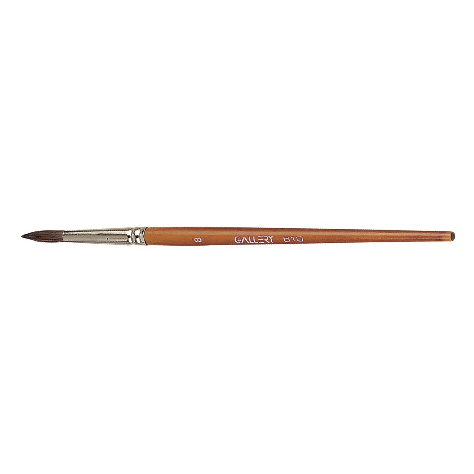 Pinceau rond Gallery série 610 n° 08, conçu pour l’aquarelle et la gouache. Composé de poils de poney pur et équipé d’un manche verni foncé, il offre précision et souplesse pour les travaux créatifs.
