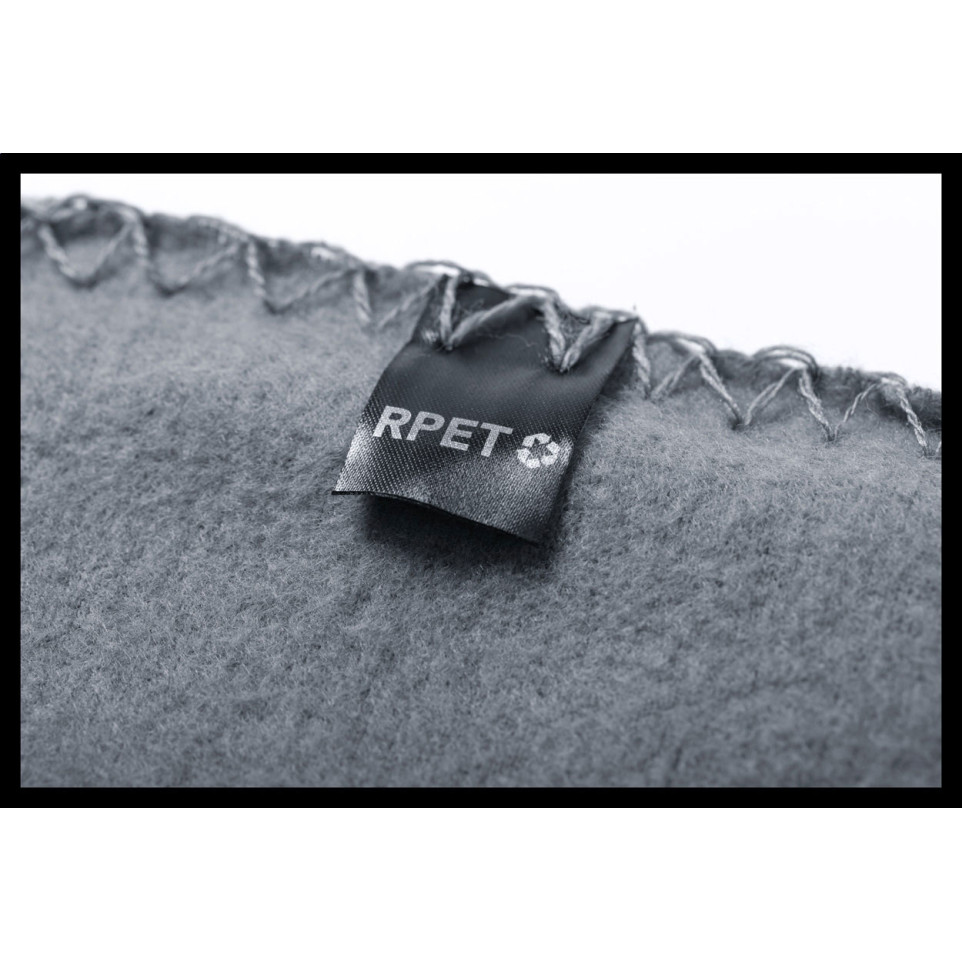 Couverture polaire Nanda gris cendré en polyester RPET, livrée avec un étui de transport pratique. Idéale pour réchauffer vos collaborateurs, clients ou visiteurs lors d'événements ou dans un cadre professionnel.