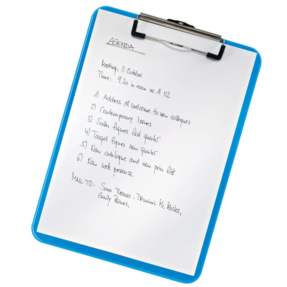 Placez simplement vos documents sous le clip métallique, fixez-les d’une pression ferme et profitez d’une manipulation sûre, même en déplacement. Cette plaque à pince permet d’écrire facilement sans support supplémentaire et protège vos dossiers lors du transport ou de la présentation.