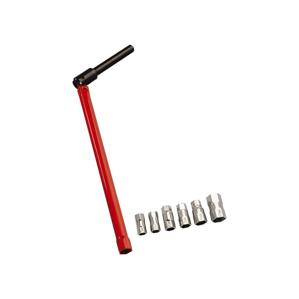 Elle dispose d’embouts pour les écrous hexagonaux de 9 à 17 mm, couvrant la majorité des fixations utilisées sur les robinets.