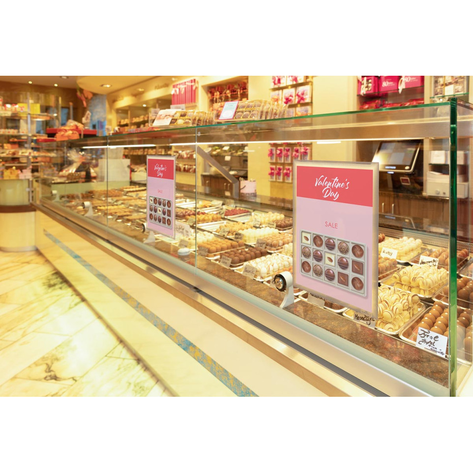 Les pochettes d'affichage A4 vitrostatique Durable sont conçues pour afficher des documents sur des surfaces en verre, acrylique et PVC, idéales pour présenter des offres, des tarifs et autres informations.