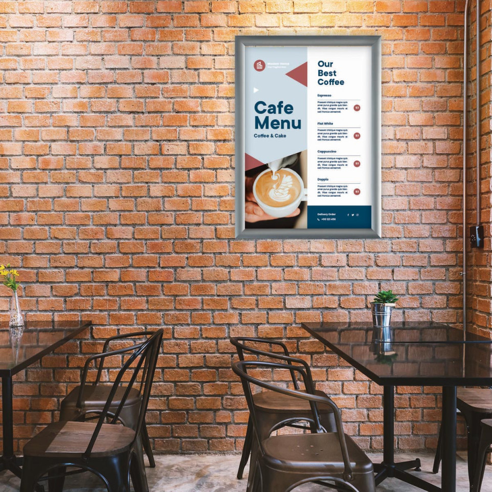 Ouvrez simplement les clapets latéraux, insérez votre affiche ou document A4 derrière le film protecteur, puis refermez les clapets pour fixer le contenu. L’installation murale se fait rapidement grâce au kit de fixation fourni, garantissant une exposition stable et sécurisée.