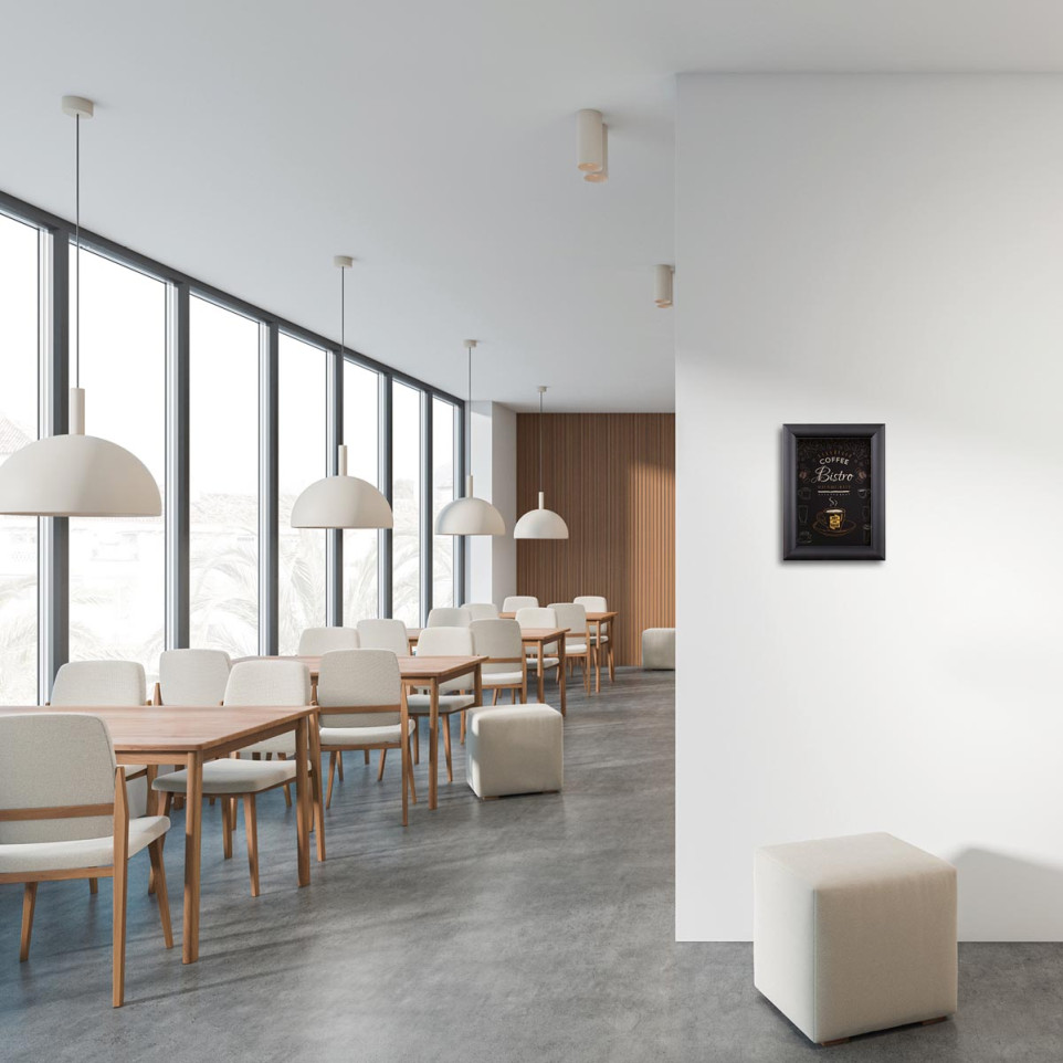 Ce porte-affiche se fixe solidement au mur grâce au matériel inclus. Son mécanisme à clapets permet d’insérer ou remplacer rapidement vos affiches sans démonter le cadre. Le film antireflet assure une lisibilité optimale en toute circonstance.
