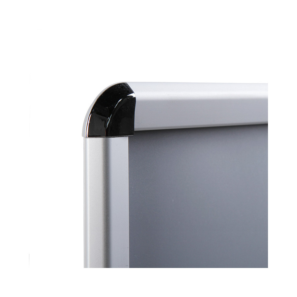 Cadre Clic-Clac A0 à coins arrondis, profilé aluminium 32 mm, conçu pour présenter et changer rapidement vos affiches au format A0 dans les environnements professionnels, publics ou commerciaux.