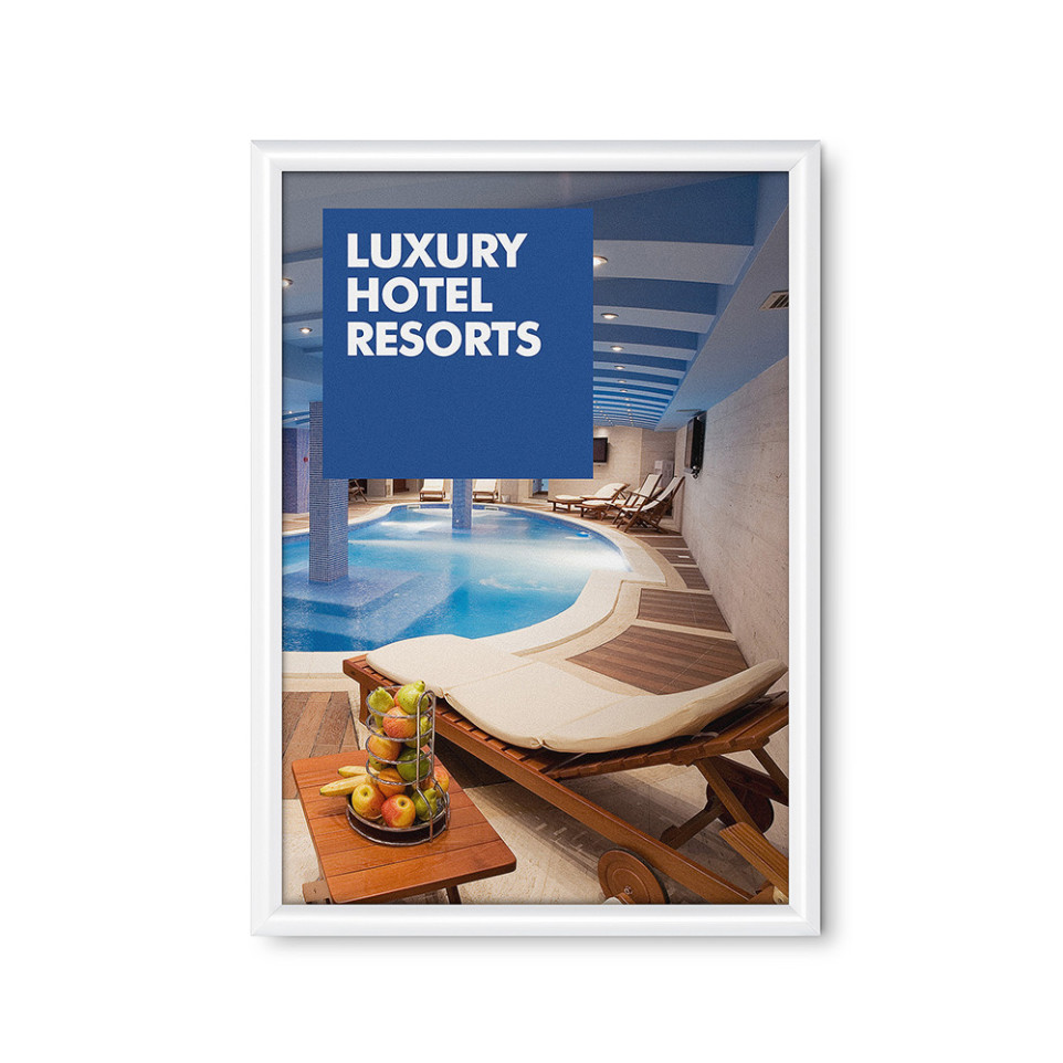L’utilisateur ouvre les quatre côtés du cadre par un simple geste grâce au mécanisme clic-clac, insère l’affiche derrière le film protecteur, puis referme chaque profil pour garantir le maintien et la visibilité du document. Le cadre peut être monté au mur en position portrait ou paysage selon les besoins d’affichage.
