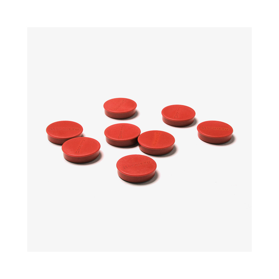 Set de 10 aimants rouges Scritto® de 3,5 cm de diamètre, spécialement conçus pour une fixation fiable sur tableaux blancs magnétiques dans les environnements de bureau, salles de réunion ou espaces éducatifs.
