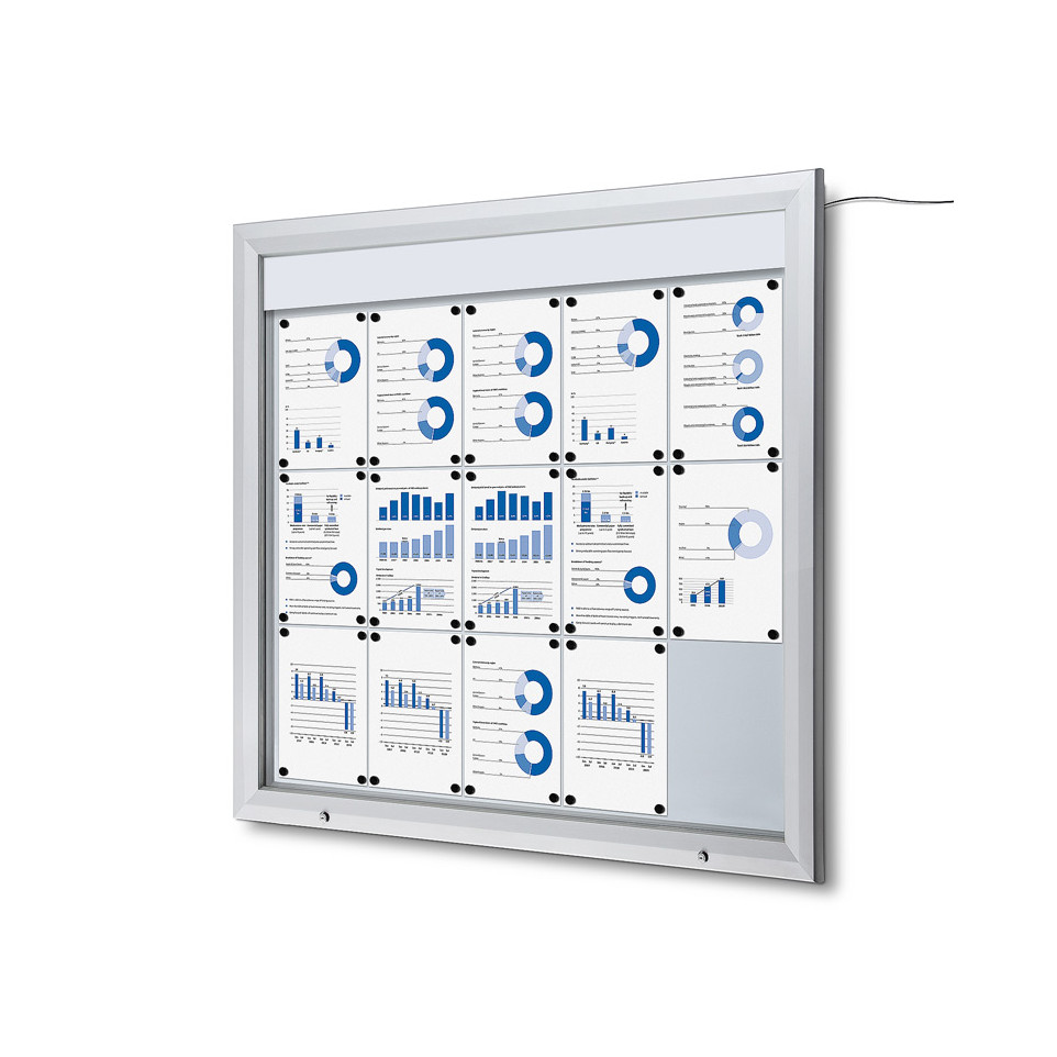 Le boîtier d’affichage extérieur à LED avec vérin à gaz 15x A4 est une solution robuste conçue pour présenter 15 affiches au format A4 en milieu extérieur. Il s’adresse aux professionnels désirant communiquer efficacement sur leurs offres ou informations dans des environnements exposés.