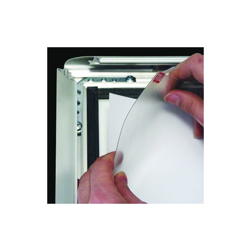 Une feuille de PVC transparent, antireflet, est incluse pour protéger votre visuel contre les intempéries et la poussière.