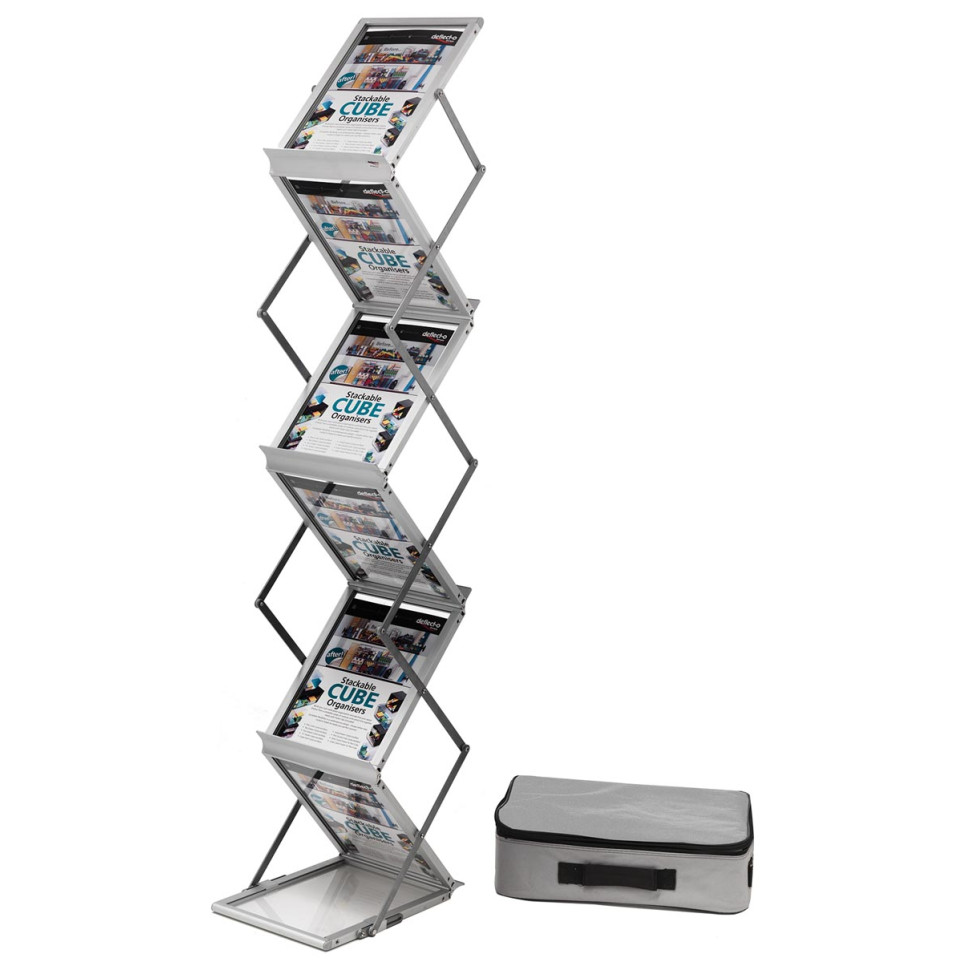 Présentoir de documents Deflecto pour format A4, doté de 7 compartiments, conçu en métal robuste, pliable pour un transport et un stockage facilités. Idéal pour organiser et présenter brochures, dépliants ou catalogues lors d’événements, salons ou en point de vente.
