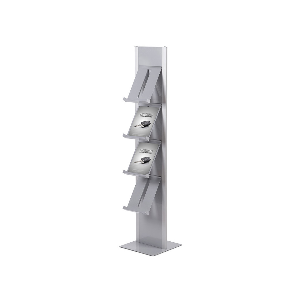 Le porte-catalogue Totem Argent est un support compact et élégant conçu pour mettre en valeur brochures, catalogues ou prospectus en environnement professionnel, lors de salons, d’accueil client ou de présentation en point de vente.
