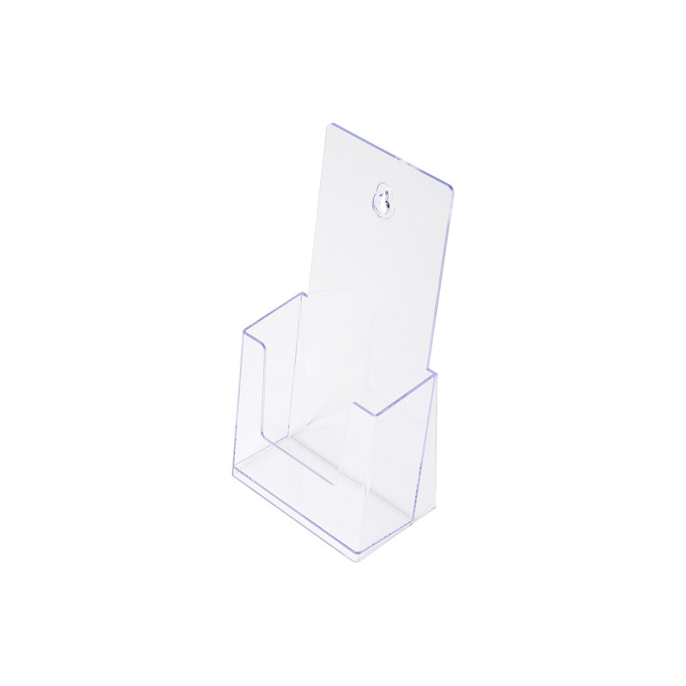 Ce porte-brochures Scritto® 1x 1/3 A4, conçu pour une installation sur comptoir ou murale, est idéal pour présenter des brochures au format portrait dans des environnements professionnels tels que bureaux, magasins et salons.