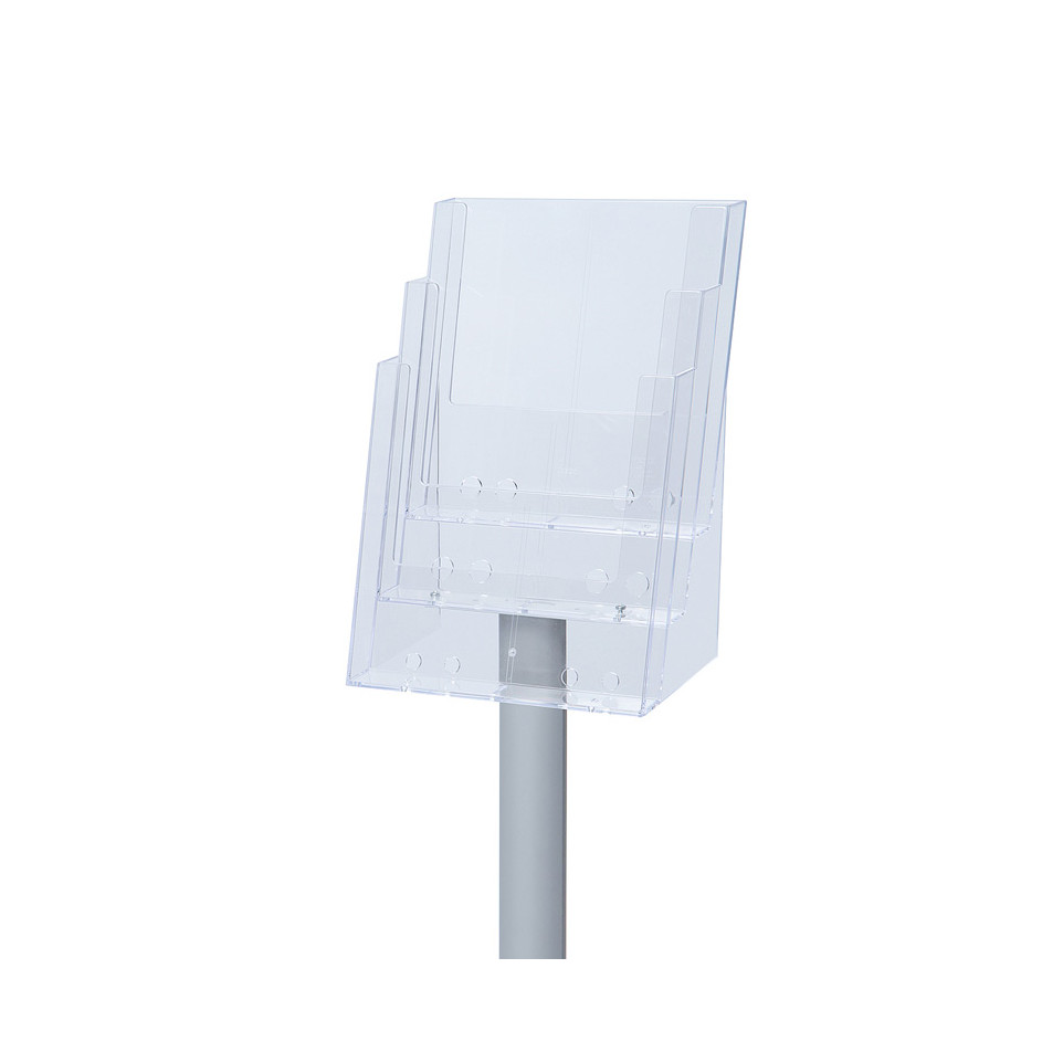 Placez le présentoir sur une surface plane, insérez vos brochures, catalogues ou documents A4 dans les trois compartiments. Le présentoir se positionne librement dans n'importe quel espace de passage ou d'accueil pour rendre vos documents facilement accessibles.