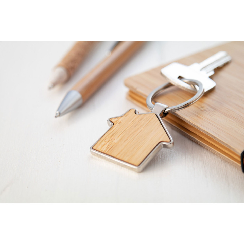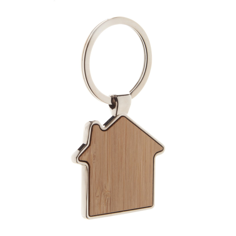 Le porte-clés Horby naturelle est un accessoire élégant en métal en forme de maison avec un insert en bambou. Livré dans une boîte en papier kraft, il allie esthétique moderne et matériaux naturels.