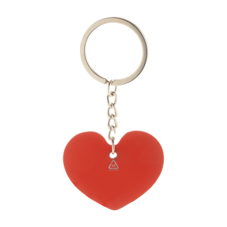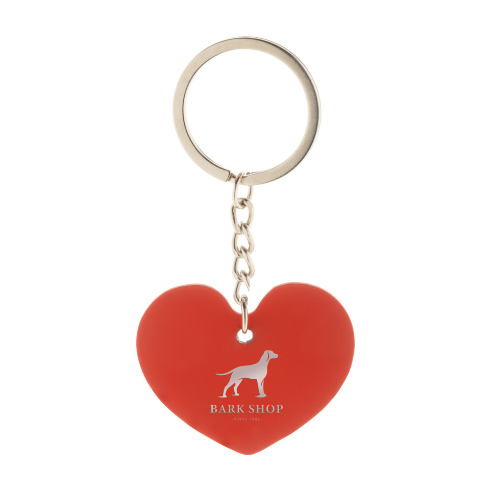 Porte-clés LoveShine rouge en acier inoxydable recyclé, silhouette cœur, finition caoutchoutée au toucher doux. Parfait pour personnaliser vos clés au quotidien ou offrir un accessoire pratique et élégant.