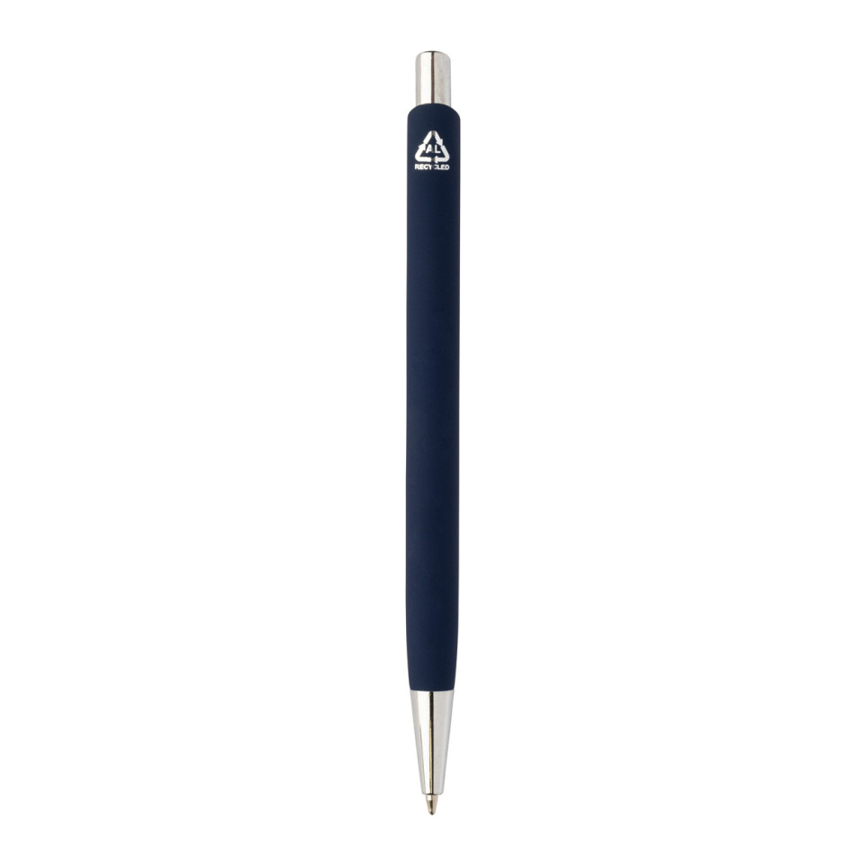 Le stylo est en aluminium recyclé, le porte-clés en acier inoxydable recyclé, tous deux avec une finition caoutchoutée.