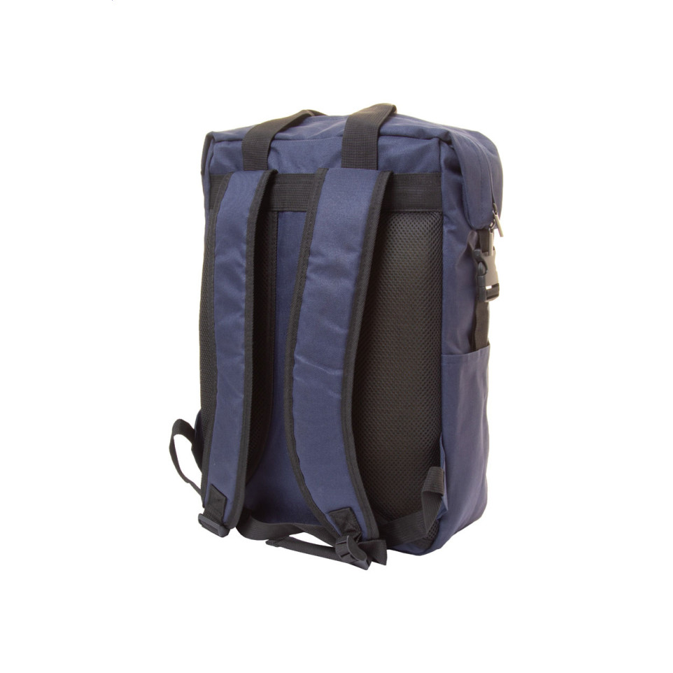 Sac à dos Ellison bleu foncé en polyester 600D RPET, conçu pour transporter ordinateur portable (jusqu’à 15”) et tablette (10”) en toute sécurité lors de déplacements professionnels ou quotidiens. Solution pratique pour documents et accessoires.