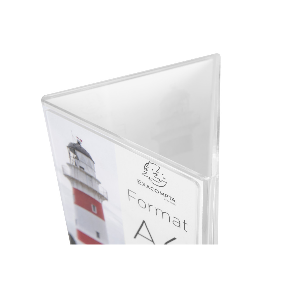 Porte-visuel tryptique A6 Le porte-visuel tryptique Exacompta est idéal pour afficher vos photos ou documents sur une table, bureau ou étagère. Utilisable sur les 3 faces, il permet donc de mettre en valeur 3 visuels et peut se placer aussi bien horizontalement (format paysage) que verticalement (format paysage). Il est fabriqué en PMMA (acrylique) de haute qualité avec une très haute transparence pour mettre en valeur votre visuel. Fabriqué en Europe, il est garanti 5 ans et est résistant aux UV, il ne jaunit pas Vous pouvez facilement créer vos supports personnalisés et à la bonne taille avec KREAMAN sur www.exacompta.com