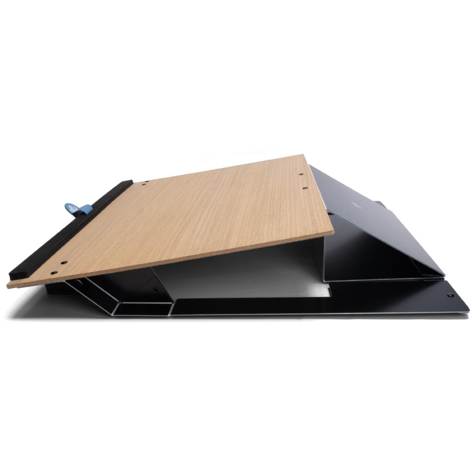 Il est conçu en aluminium léger avec un plateau supérieur en chêne naturel et un support de poignet en mousse.