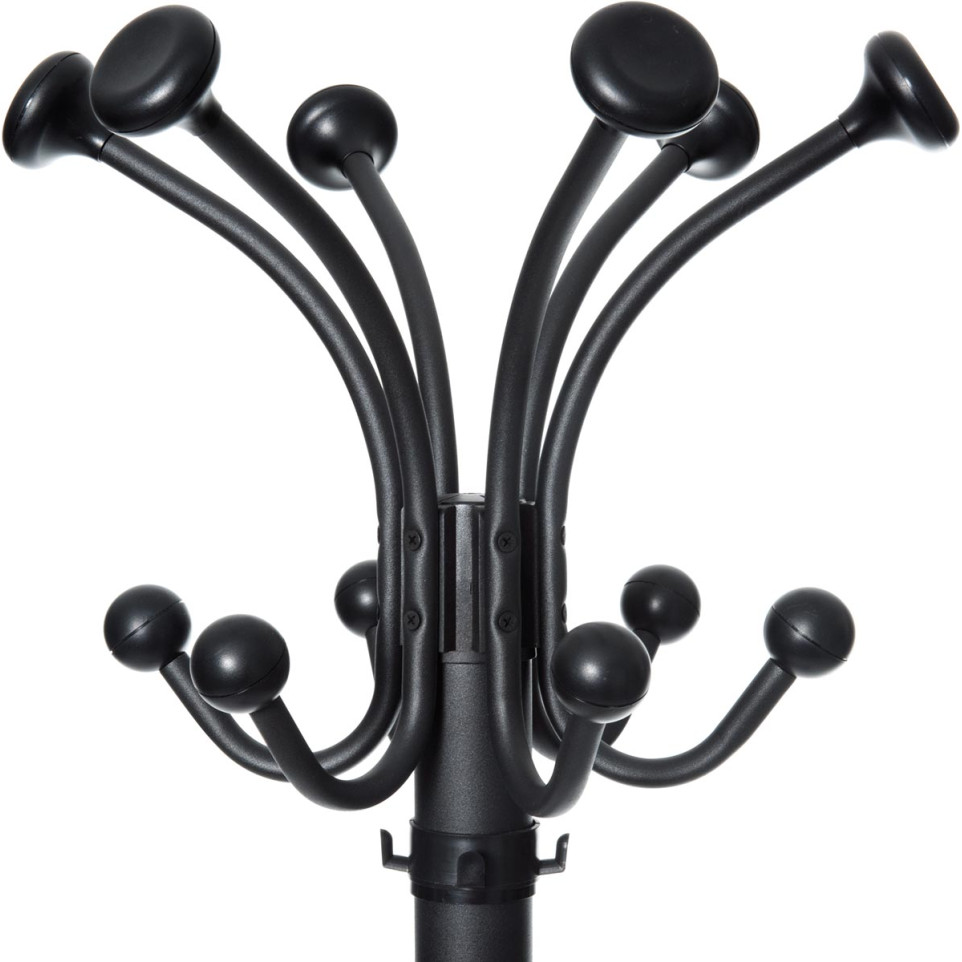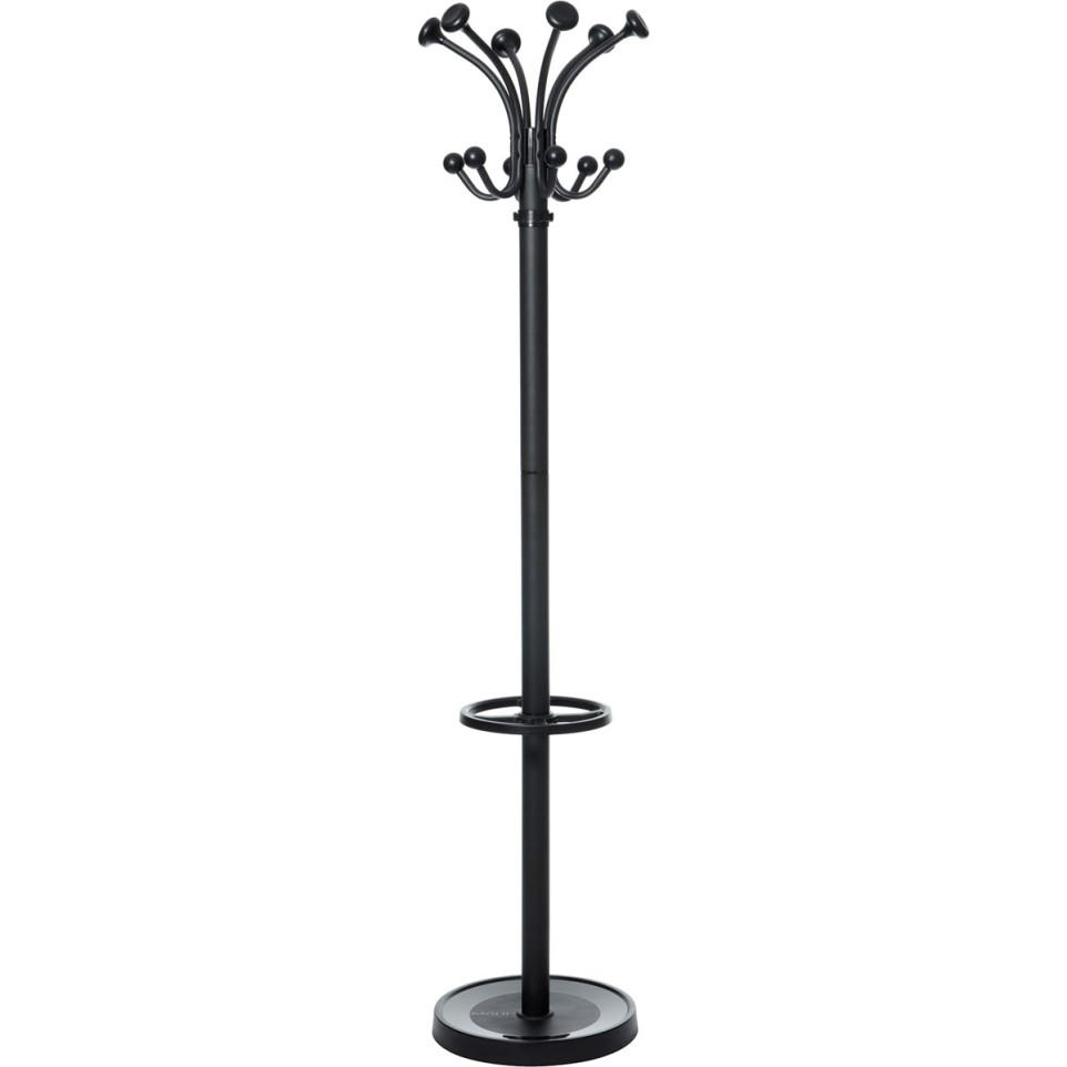 Le MAUL Porte-manteaux Nubis est un porte-manteaux sur pied noir, conçu pour les espaces professionnels et privés, offrant 20 patères et un porte-parapluies intégré pour un rangement optimisé des vêtements et accessoires.